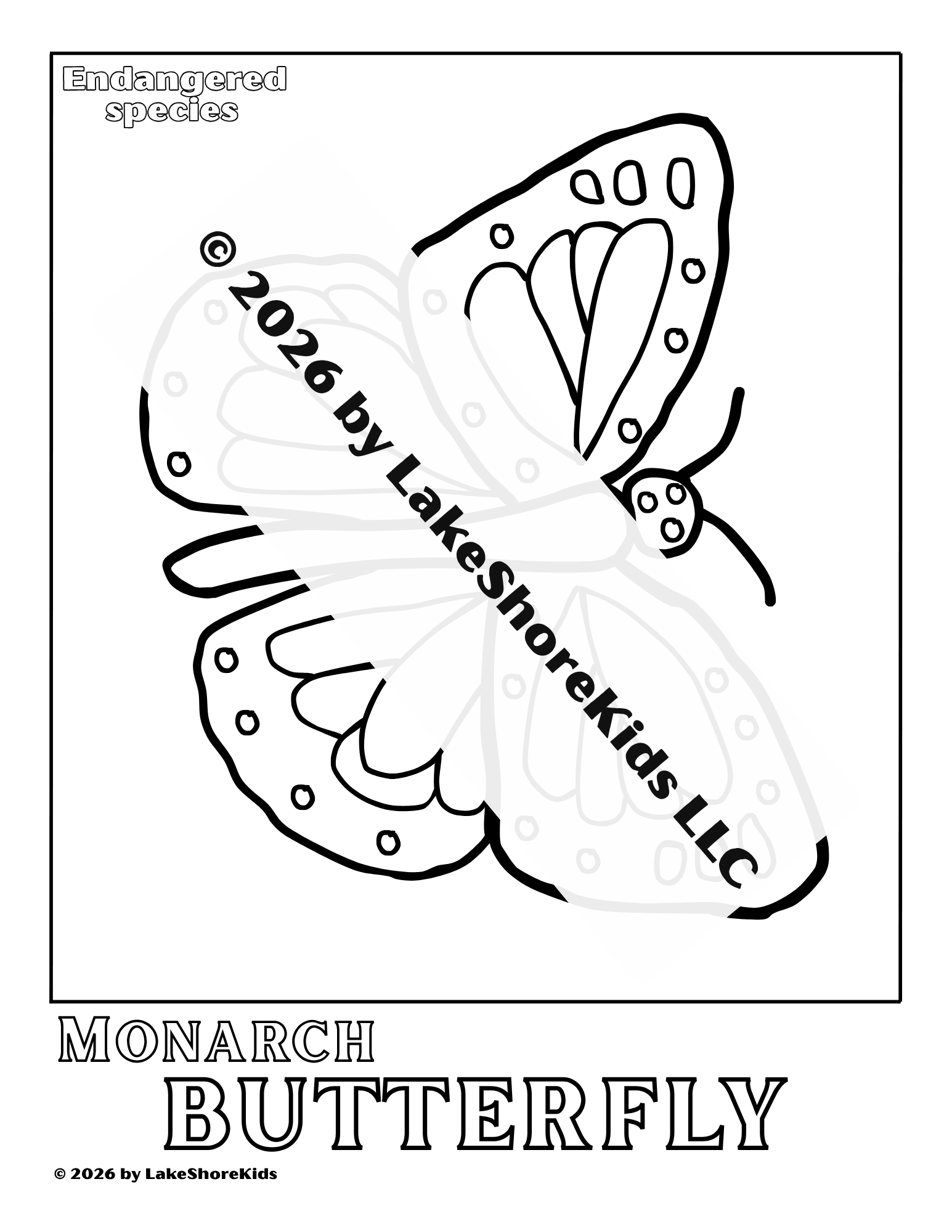 PDF Coloring page of a female Monarch Butterfly. This is a hand drawn illustration with thick, bold lines for toddlers and children 3+ to add color at home or on the go.